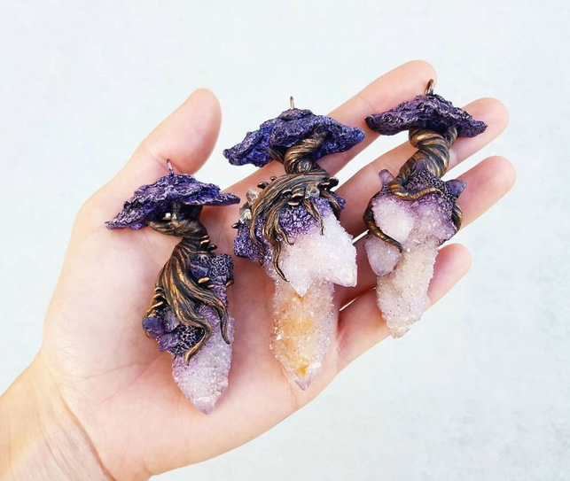 Khu rừng long lanh như trong truyện cổ tích đã được Cheryl Lee đem ra ngoài đời thực. Bộ sưu tập mặt dây chuyền tinh xảo được chế tác từ những nguyên liệu đơn giản như đất sét, vỏ sò hay đá tự nhiên. Từng món đồ đều được Cheryl trực tiếp chế tác thủ công.